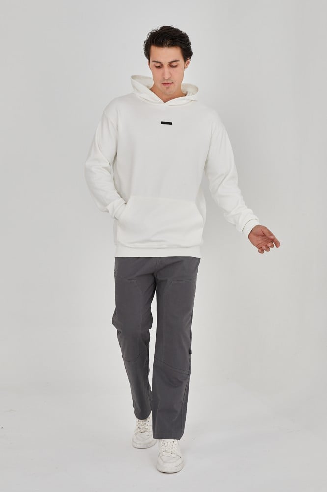 هودي فرو أوفر سايز أبيض بشعار n9ntey limited